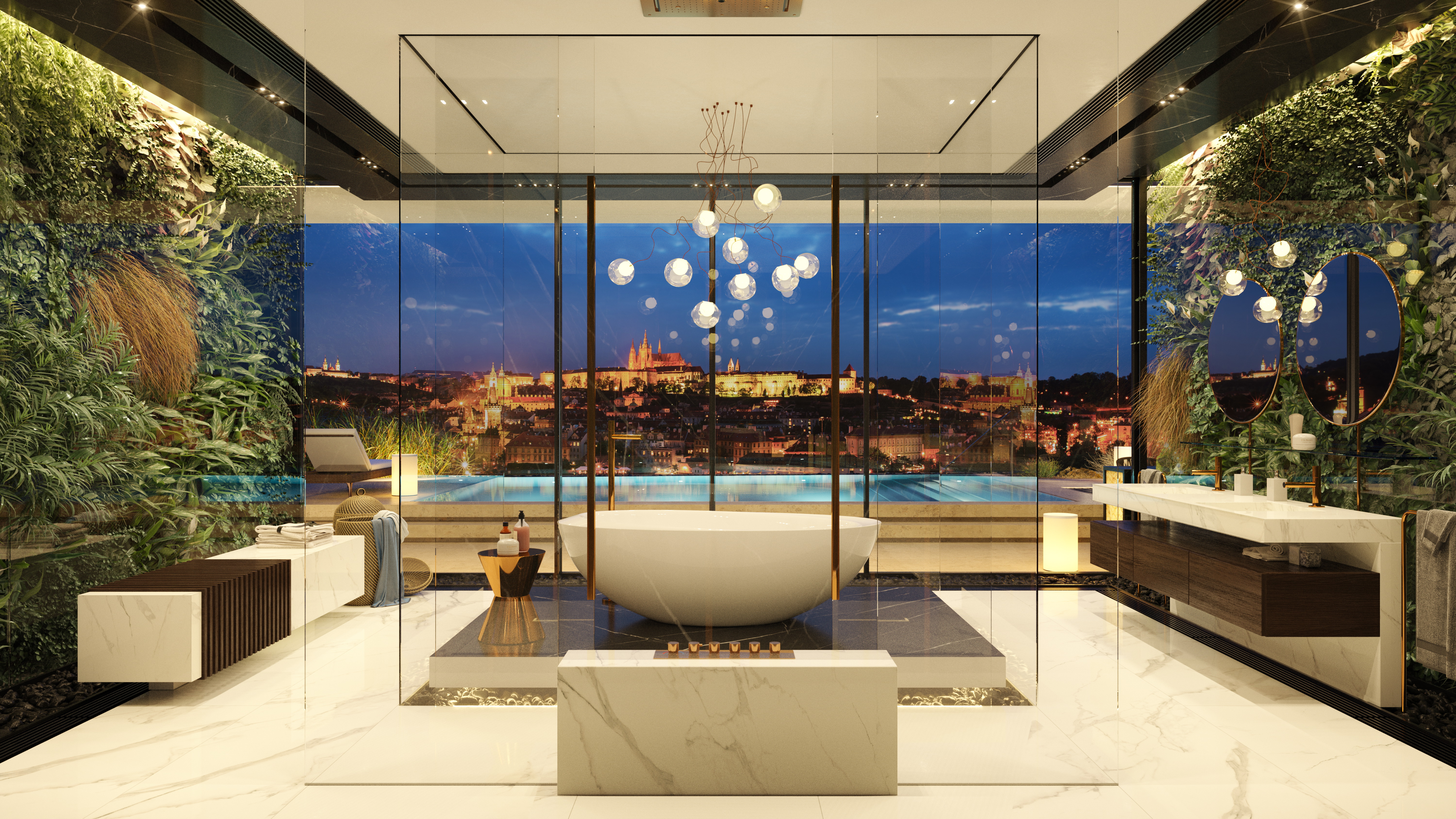 Pro apartmány na prestižní pražské adrese jsme navrhli kompletní interiér určený pro prémiové vizualizace. Z pouhé dokumentace vznikl prostor, který působí sebevědomě, luxusně a především nezapomenutelně.